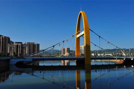Yunxi Tian Heping No.1 Bridge is a self-anchored suspension bridge with 2×50m main span.