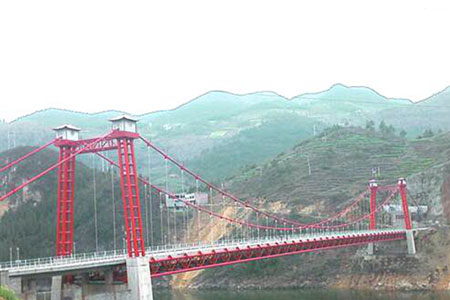 香麗高速公路虎跳峽大橋?yàn)楠?dú)塔單跨地錨式鋼桁梁懸索橋,總長1020米。所設(shè)計(jì)...