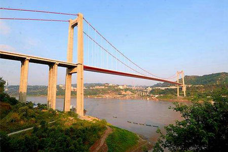 重慶青草背長江大橋全長1652米,主橋為單跨788米的懸索橋,位于涪陵區(qū)李渡長江...